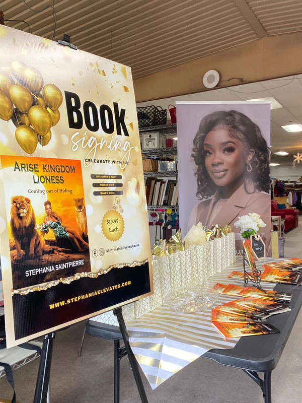 Arise Kingdom Lioness Book Signing was an exceptional and impactful event that took place at the local neighborhood store, "Youth Assistance Thrift Store." The event was spearheaded by the talented and passionate author, Stephania Saintpierre, in collaboration with the store owner, Cherly, who showed great kindness and generosity in hosting the event. The book signing not only achieved tremendous success but also created a vibrant and supportive environment for all attendees.